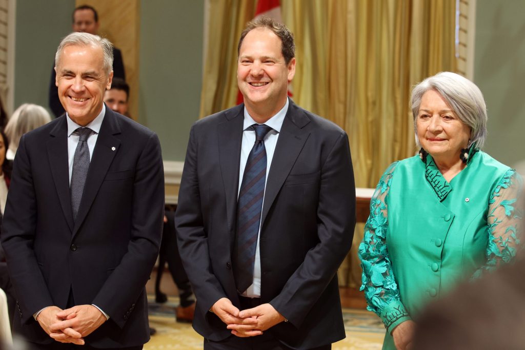 Secretary of State for Labour John Zerucelli, centre, poses with Governor General Mary Simon, right, and Prime Minister Mark Carney after being sworn in at Rideau Hall on May 13. The Hill Times photograph by Sam Garcia