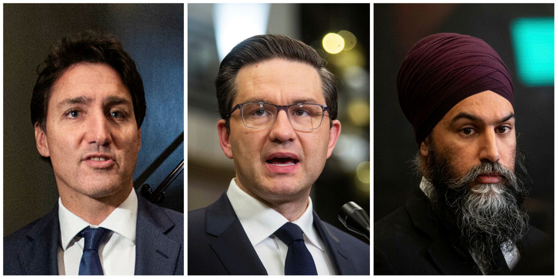 The parties of Prime Minister Justin Trudeau, left, Conservative Leader Pierre Poilievre, and NDP Leader Jagmeet Singh have not yet said if they will appeal a May 15 court ruling that found federal political parties are subject to B.C.'s privacy laws.