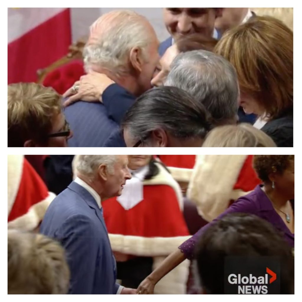 While physical touching is generally considered off-limits when it comes to Canada’s monarch, two notable people were spotted being familiar with King Charles III in the lead-up to his giving the Throne Speech in the Senate chamber last week.