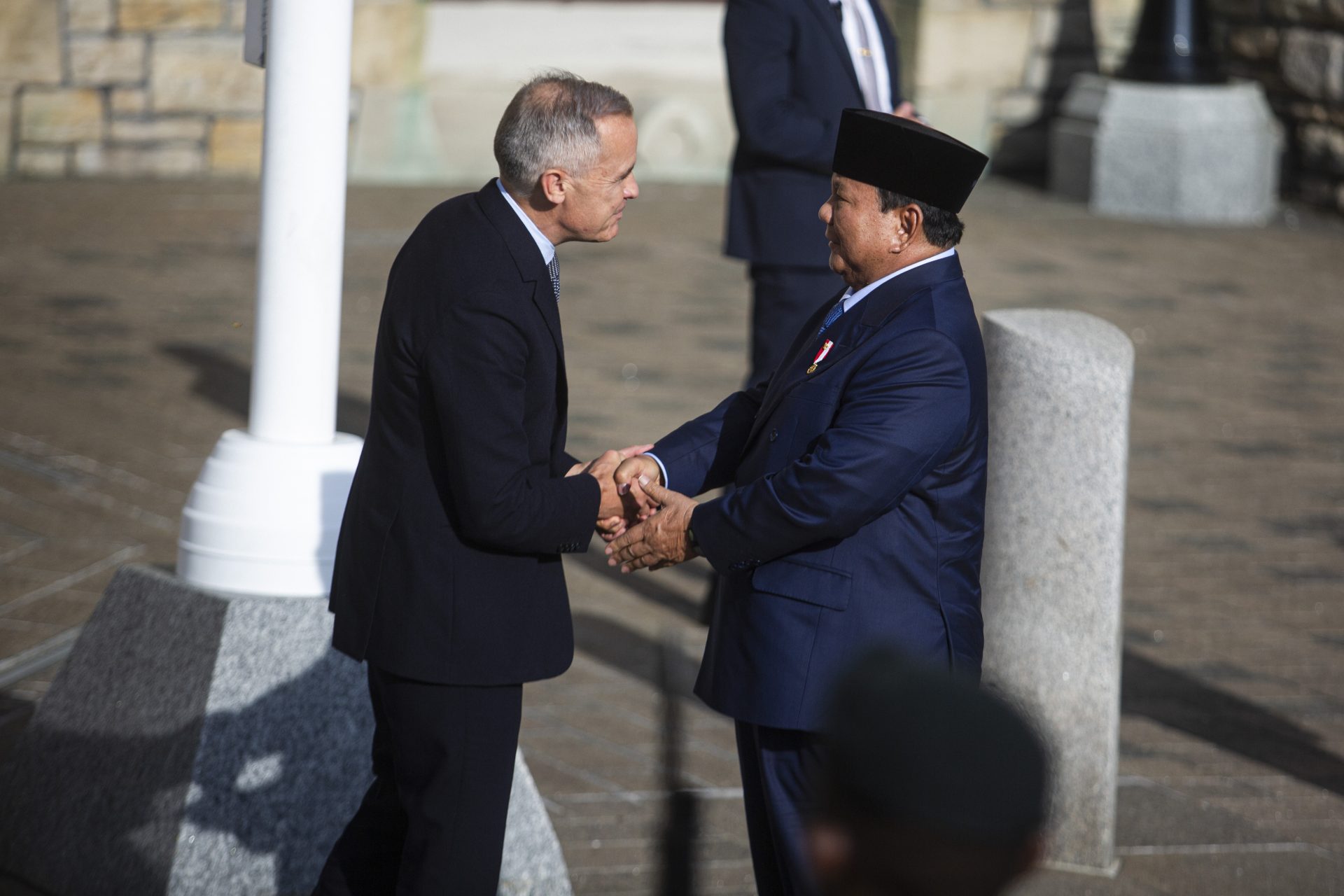 Prime Minister Mark Carney welcomes Indonesian President Prabowo Subianto to West Block on Sept. 24, 2025, for a working visit to sign a comprehensive economic partnership agreement and defence co-operation agreement. The Hill Times photograph by Andrew Meade