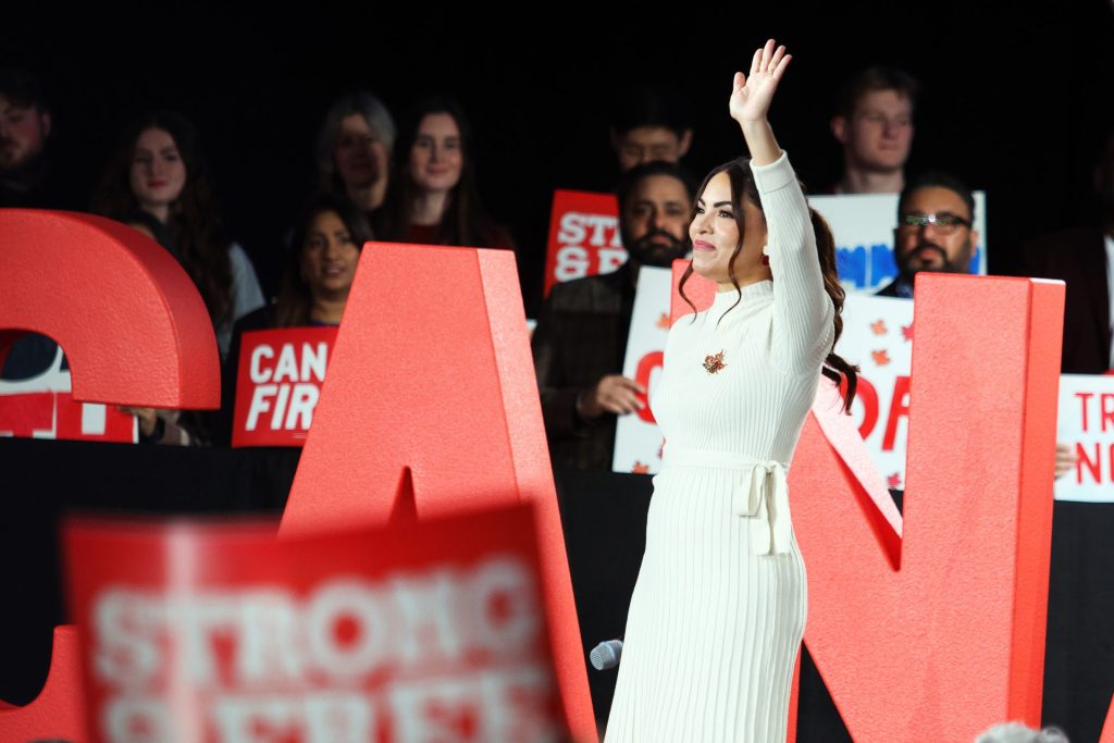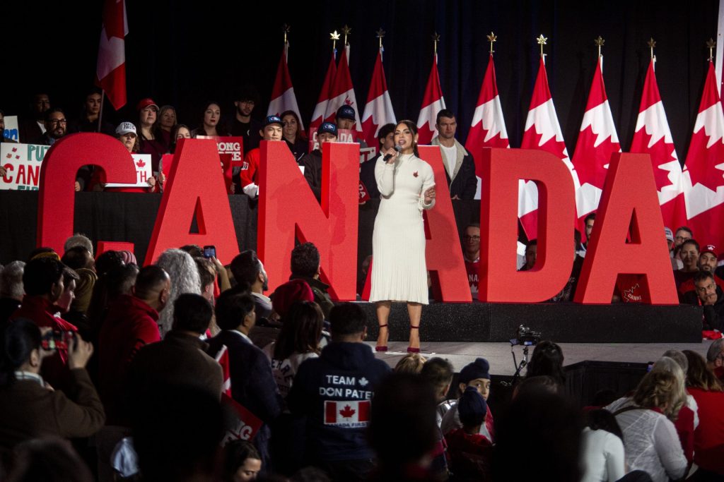 Anaida Poilievre takes the stage at the ‘Canada First’ event on Feb. 15. The Hill Times photograph by Sam Garcia
