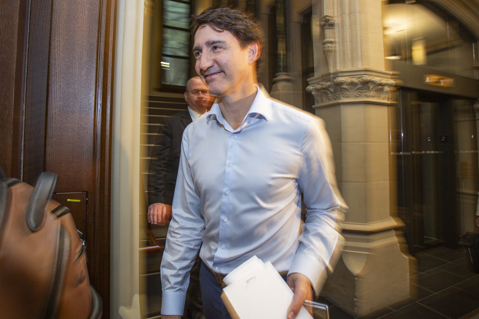 Prime Minister Justin Trudeau arrived for the Liberal caucus meeting smiling, and left the meeting smiling too. He told reporters the Liberal Party is “strong and united.”
