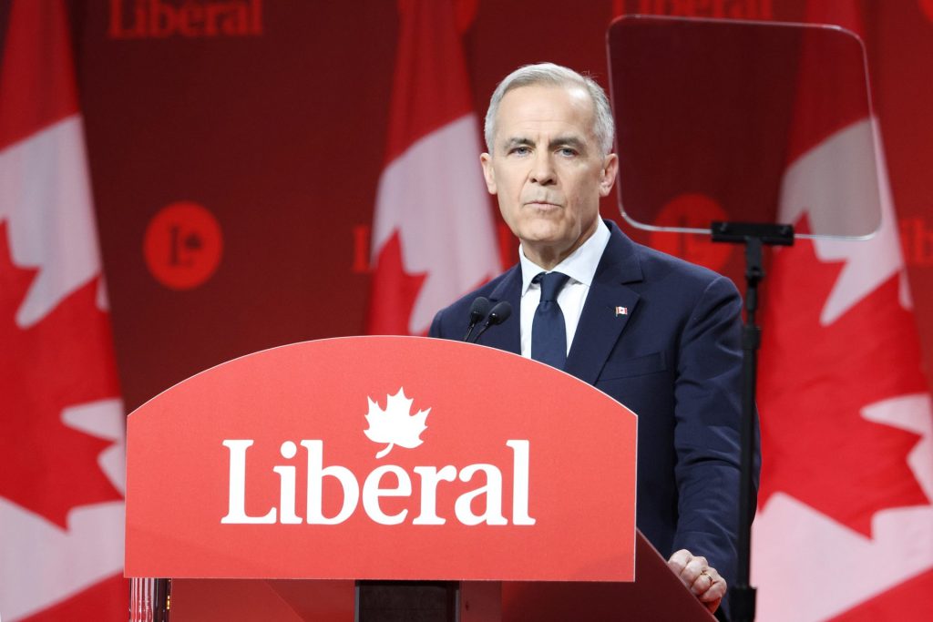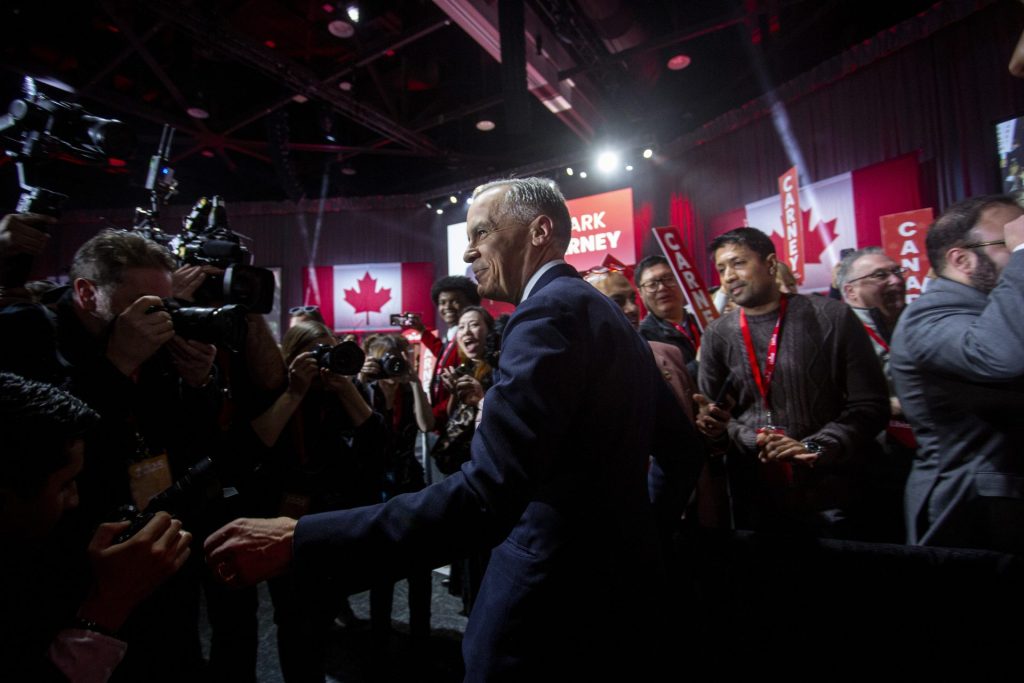 Newly elected Liberal Leader Mark Carney addresses supporters after winning on the first ballot with 85.9 per cent of the vote at the March 9 event.