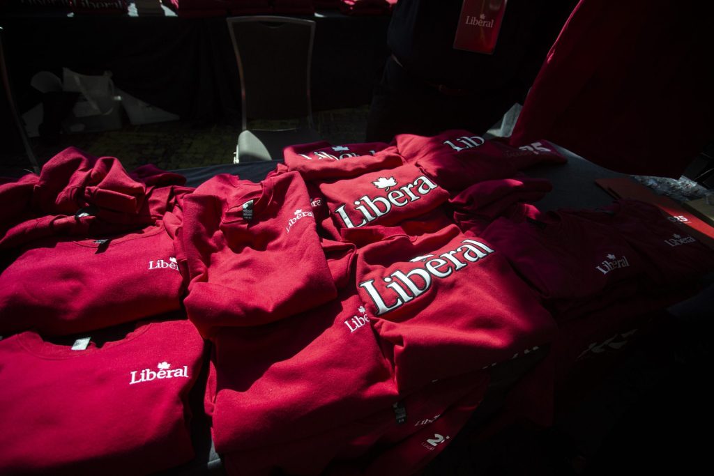Liberal swag was displayed at the convention ahead of the leadership announcement. The Hill Times photograph by Andrew Meade