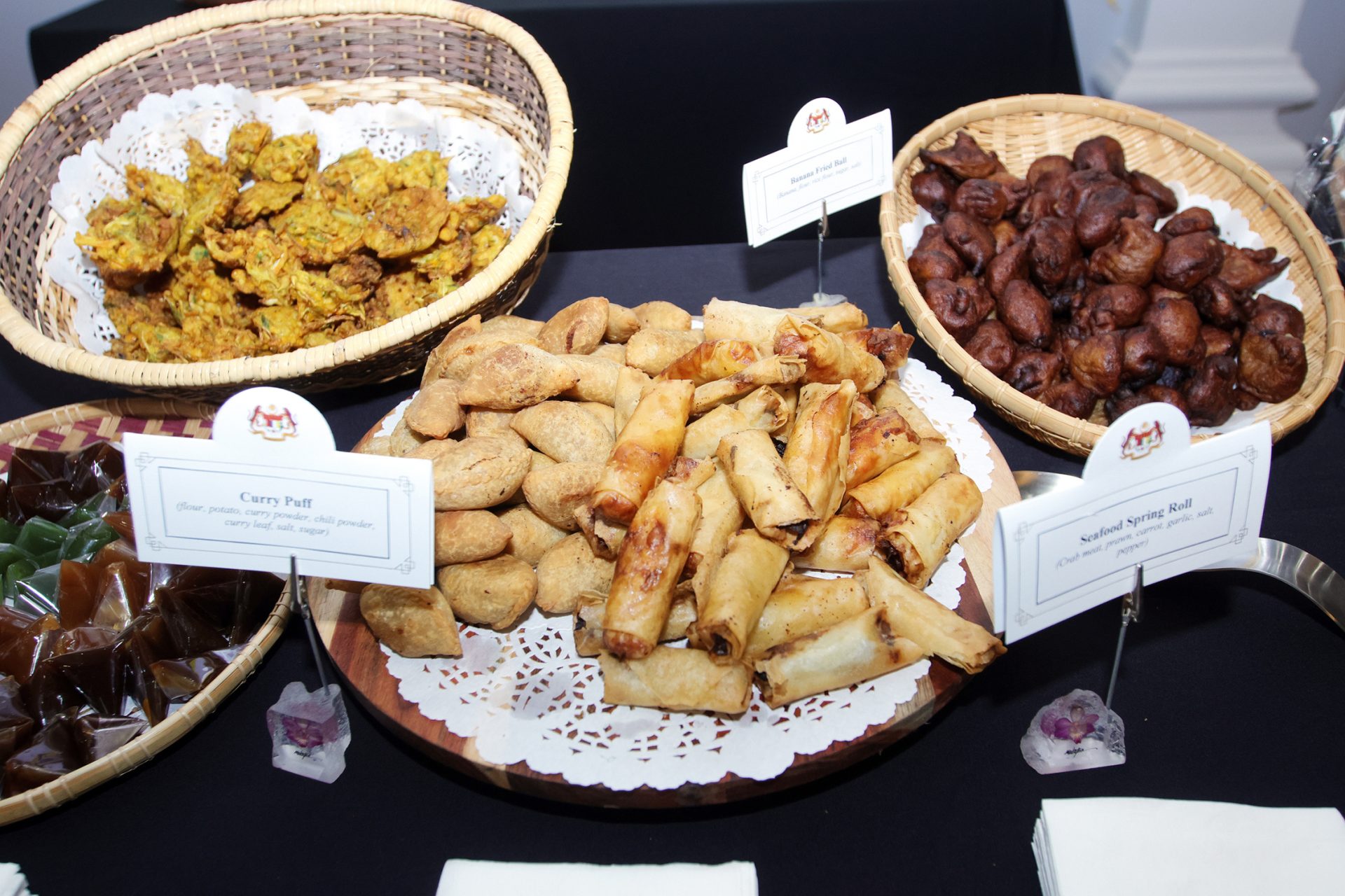 Malaysian High Commissioner Shazelina Zainul Abidin addresses guests at a reception marking her country’s national day at Sala San Marco in Ottawa’s Little Italy neighbourhood on Aug. 28. The Hill Times photograph by Sam GarciaChilean Ambassador Juan Carlos Perez de Arce, left, and Nepalese Ambassador Bharat Raj Paudyal. The Hill Times photograph by Sam GarciaCurry puffs, seafood spring rolls, and fried banana balls were among the treats on offer at the bash. The Hill Times photograph by Sam GarciaPhilippines Ambassador-designate Jose Victor V. Chan-Gonzaga, left, and Malaysian First Secretary Nor Aliaa Zainal Abidin. The Hill Times photograph by Sam GarciaZainul Abidin, right, and Malaysian Deputy High Commissioner Hardi Hamdin. The Hill Times photograph by Sam Garcia