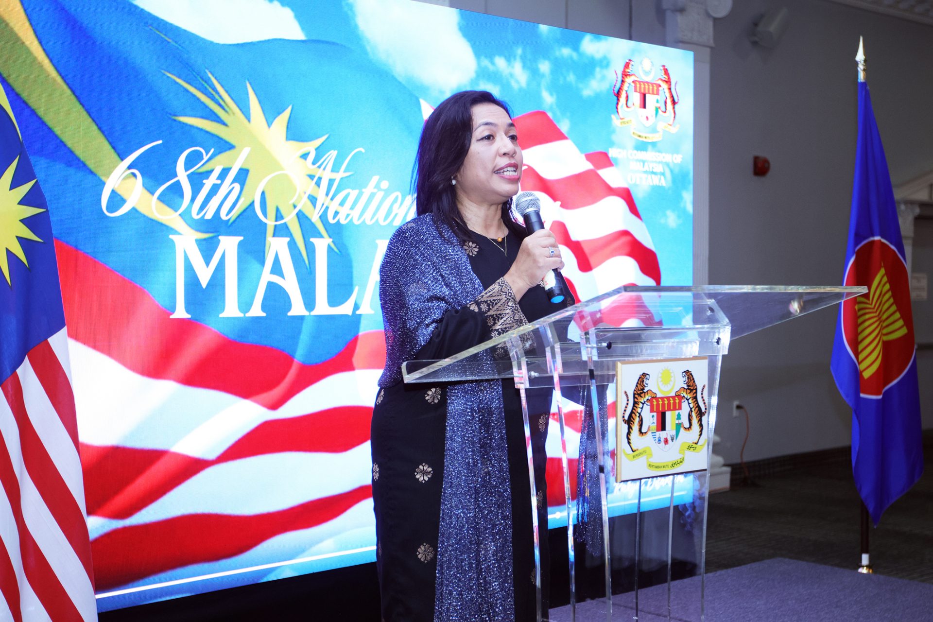 Malaysian High Commissioner Shazelina Zainul Abidin addresses guests at a reception marking her country’s national day at Sala San Marco in Ottawa’s Little Italy neighbourhood on Aug. 28. The Hill Times photograph by Sam Garcia