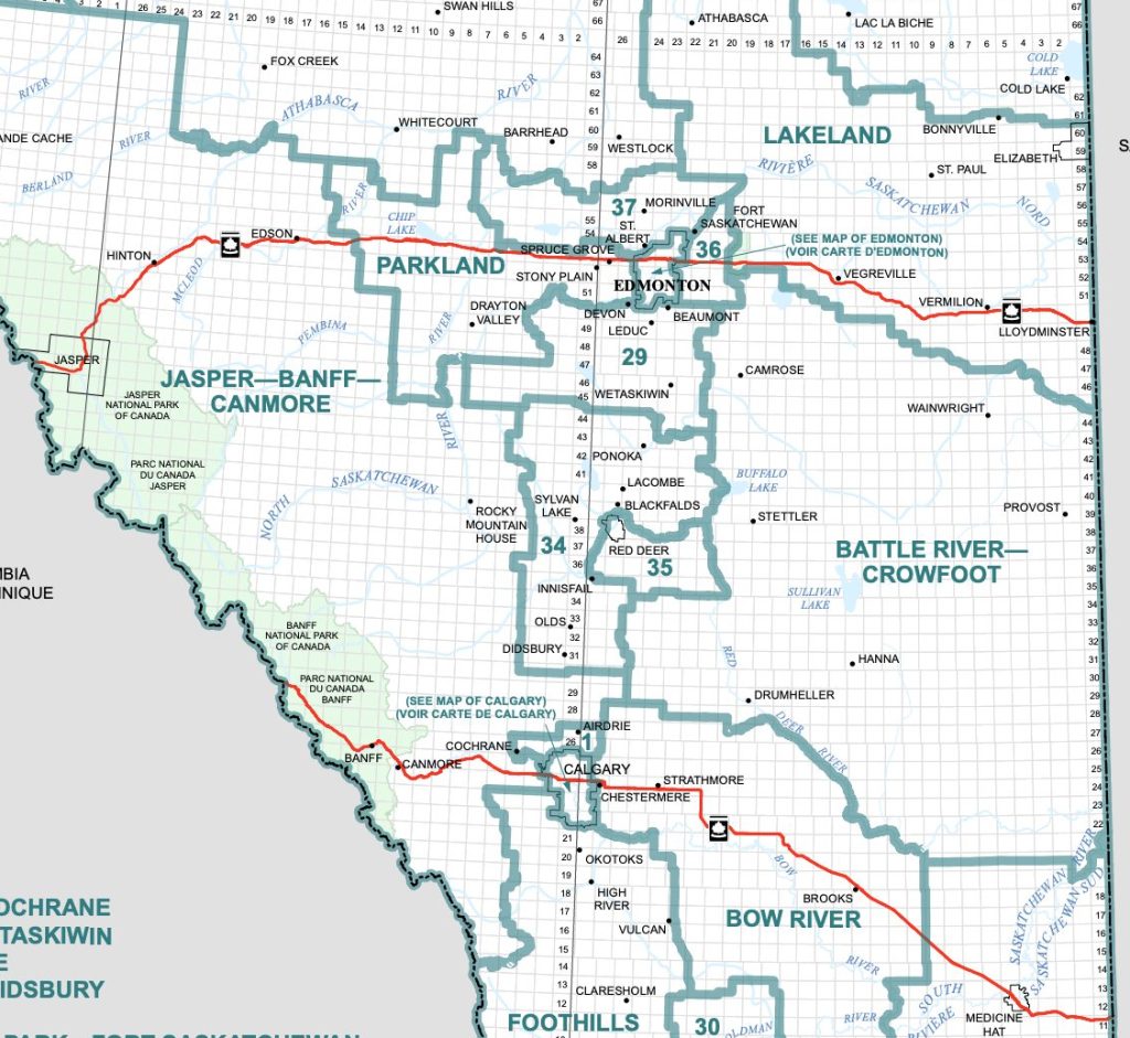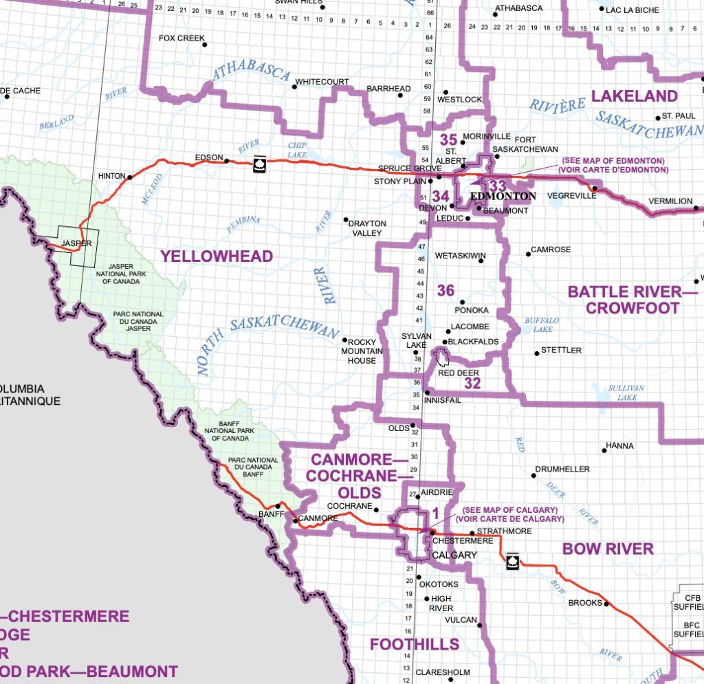 The new riding near Edmonton will instead be geographically much larger and be named Parkland, spanning from the city’s western edge past Chip Lake and including the cities of Spruce Grove, Stony Plain, and Drayton Valley (which is currently in Yellowhead).