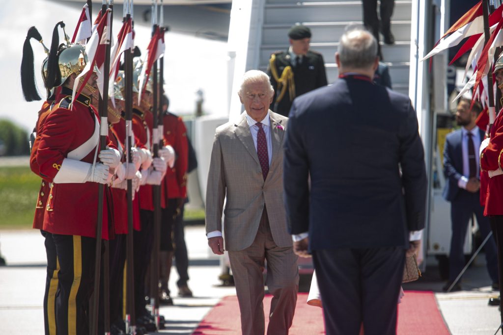 King Charles walks down the red carpet at the airport on May 26, arriving in Ottawa the day before he was set to deliver the Throne Speech. The Hill Times photograph by Andrew Meade